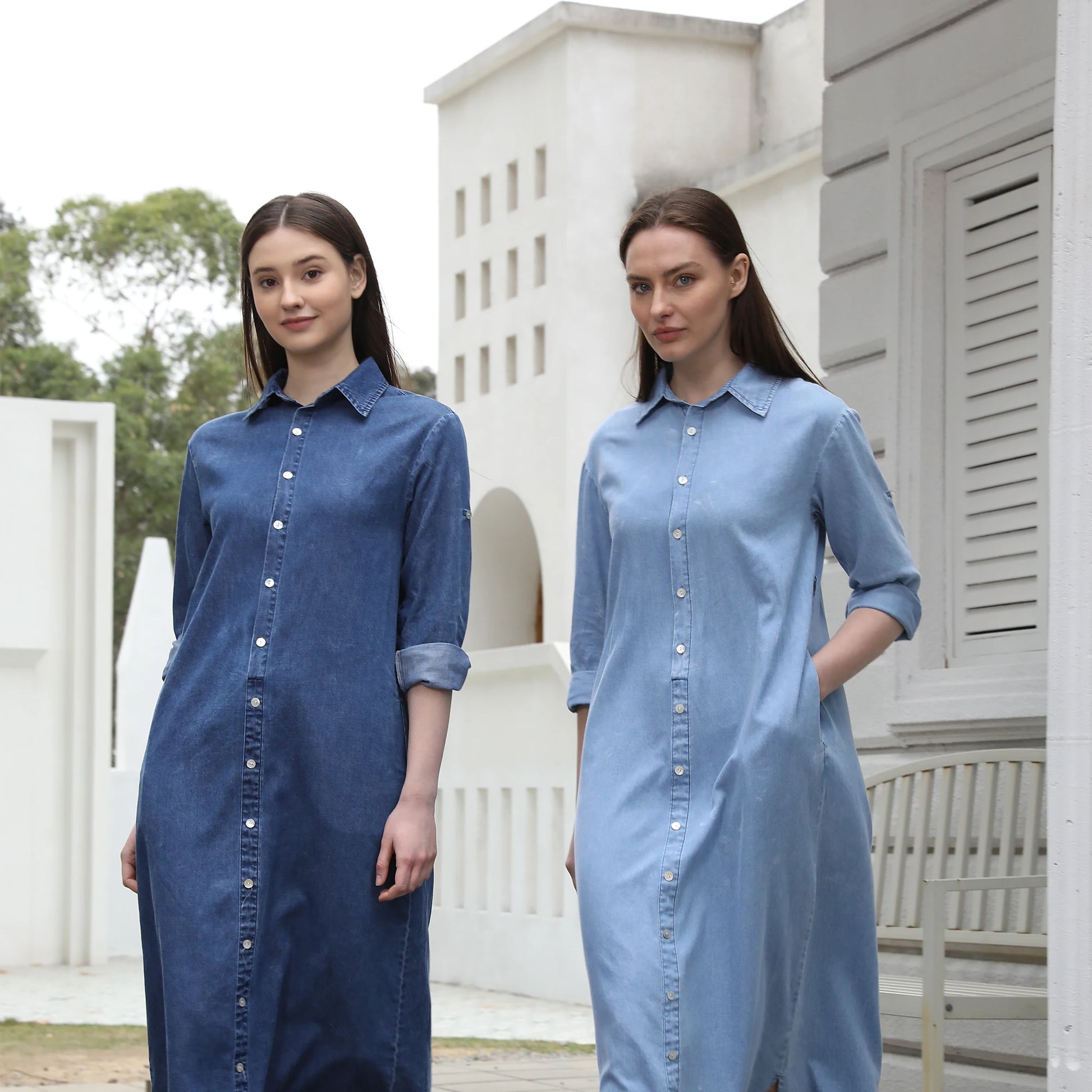 Denim Modest Maxi Shirt Dress – Belted Waist
