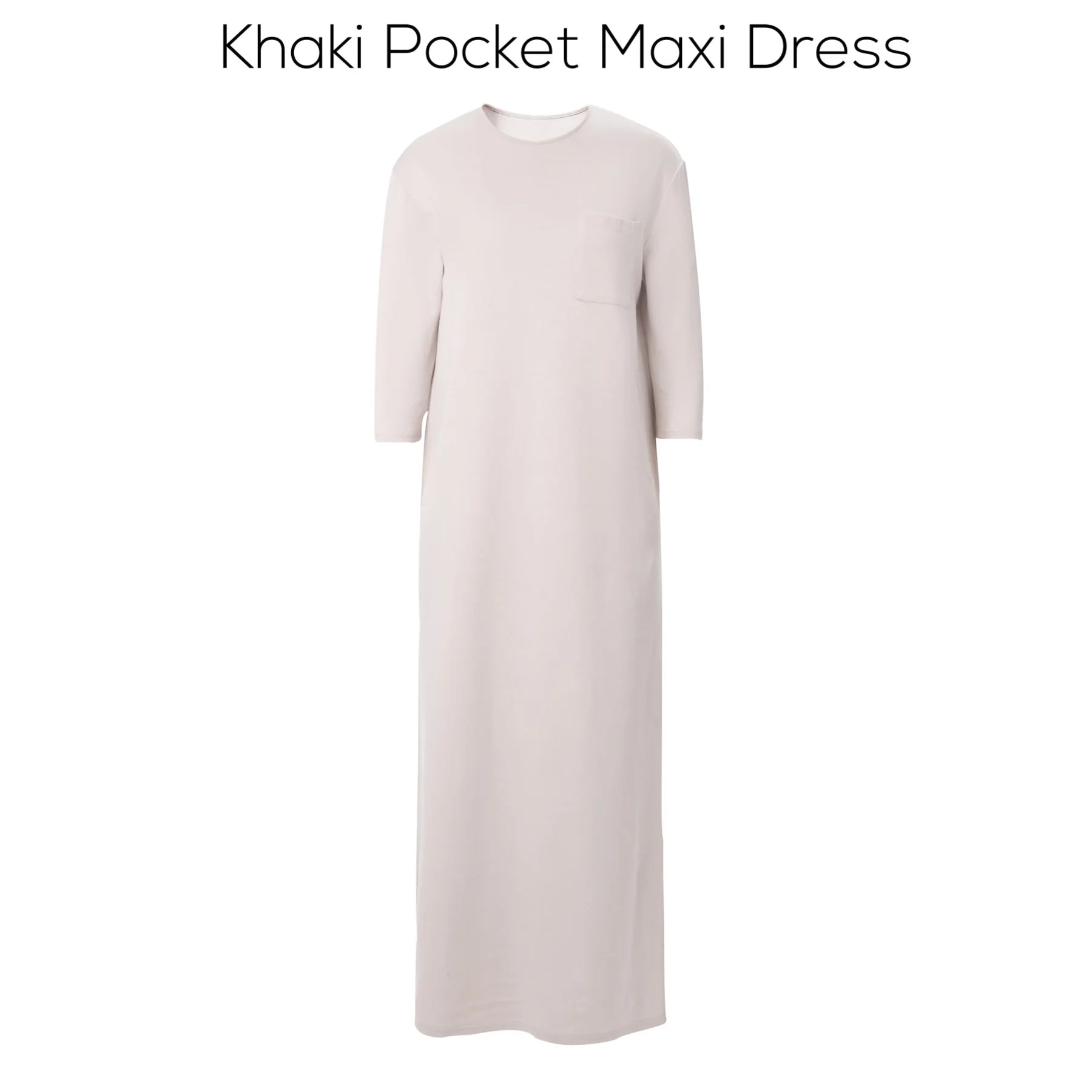 Soft Cotton Maxi Dress – 3/4 Sleeve with Side Pockets