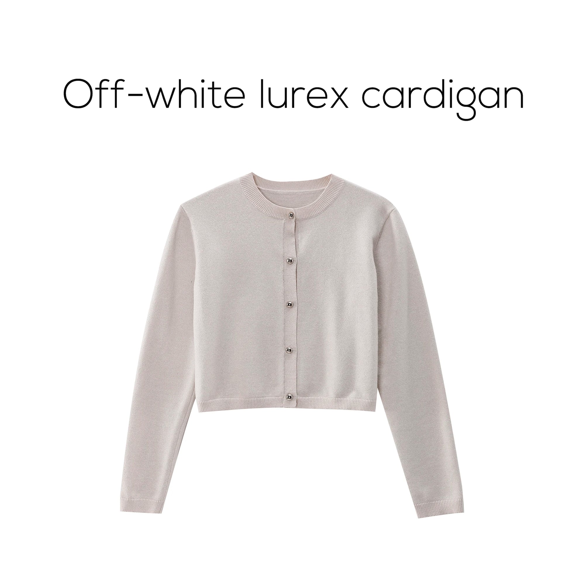 2-Piece Satin Pleated Slip Dress with Shimmer Cardigan