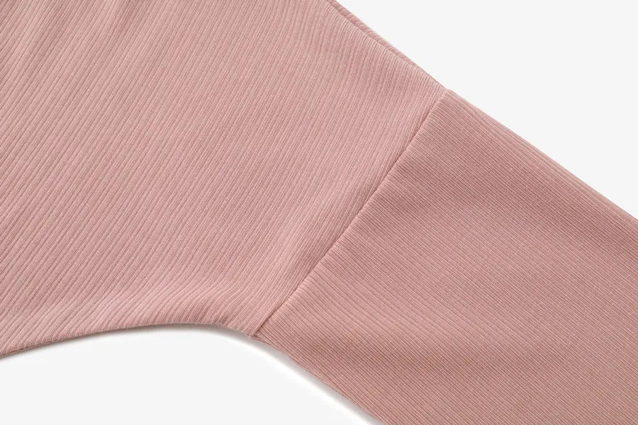 Loose Ribbed V-Neck Top with Batwing Sleeves (High-Stretch Cotton Blend)