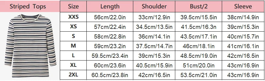 Striped Ribbed Top with 3/4 Sleeves (High Stretch Cotton Blend)