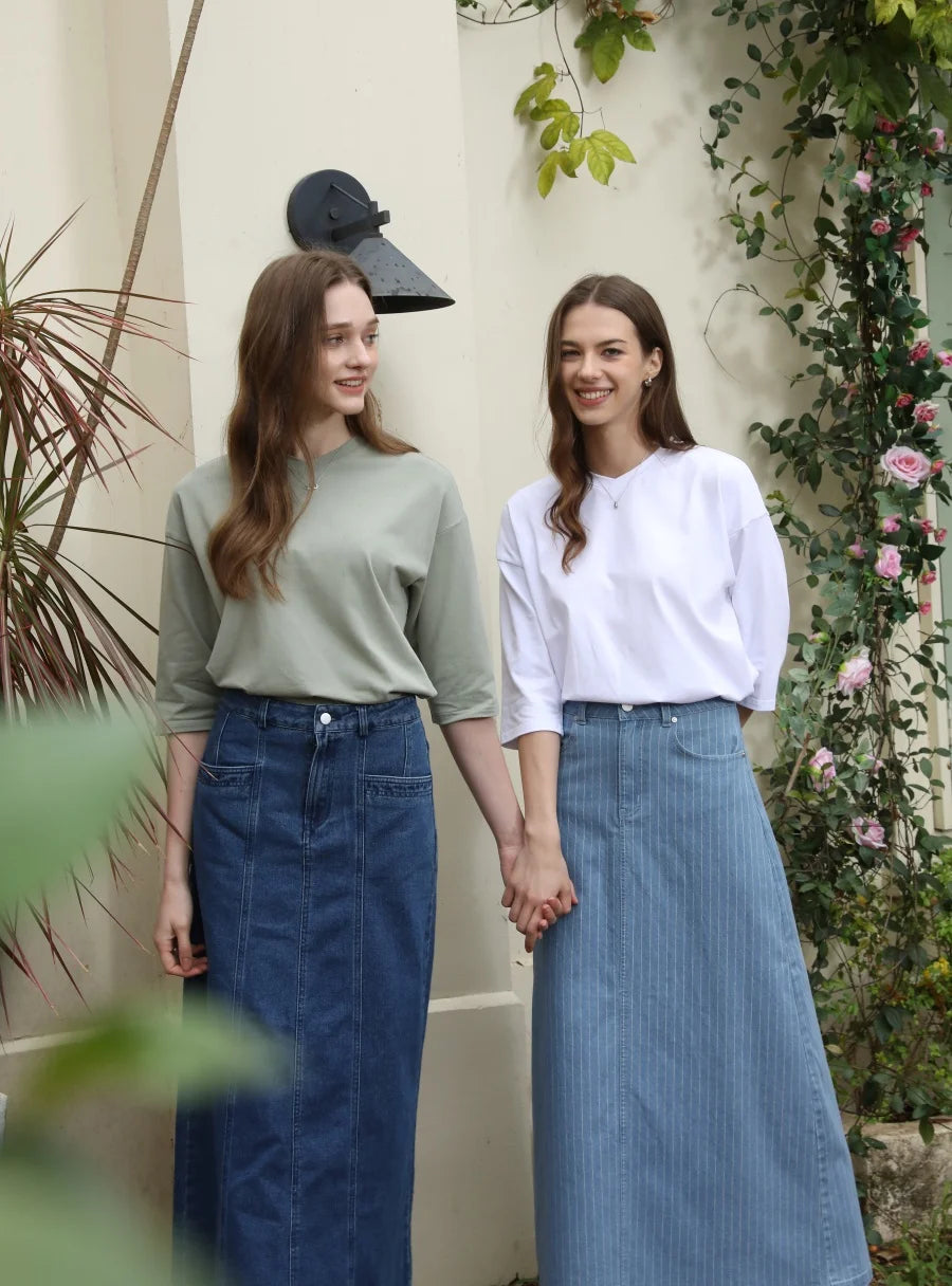 Loose Boxy V-Neck Tee with Drop Sleeves (Cotton Blend)