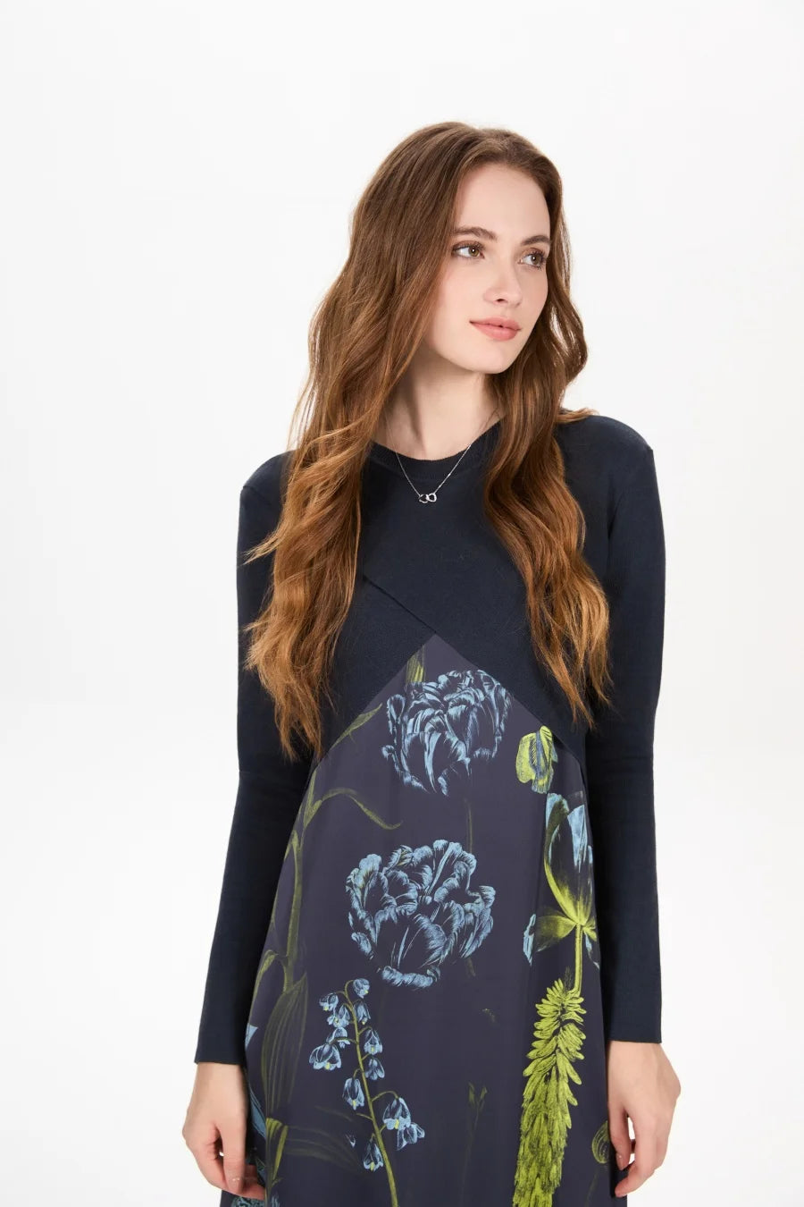 Satin Slip Dress + Knit Cross Top Set (Adjustable Maxi Length)