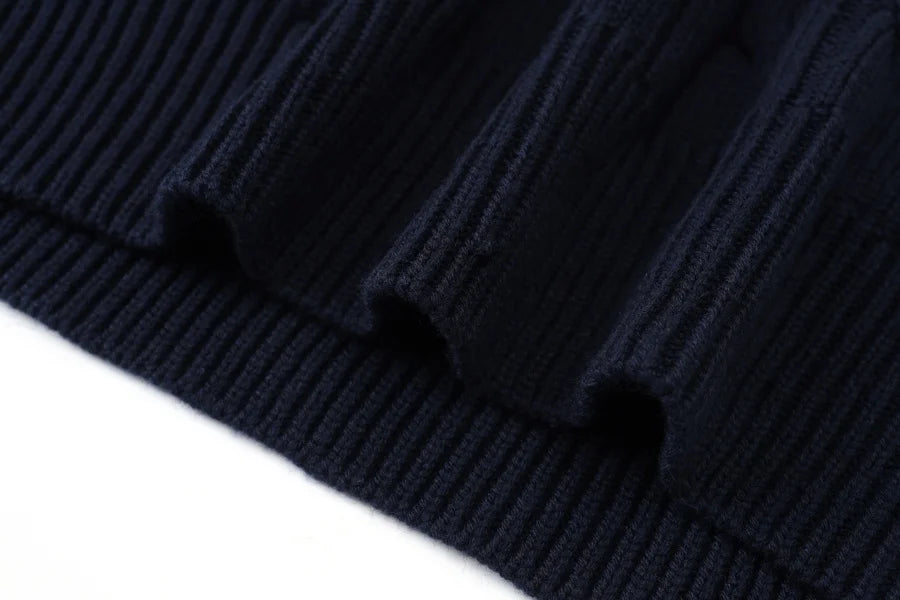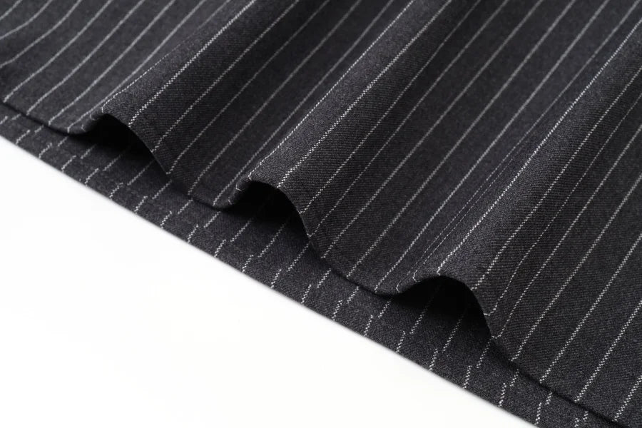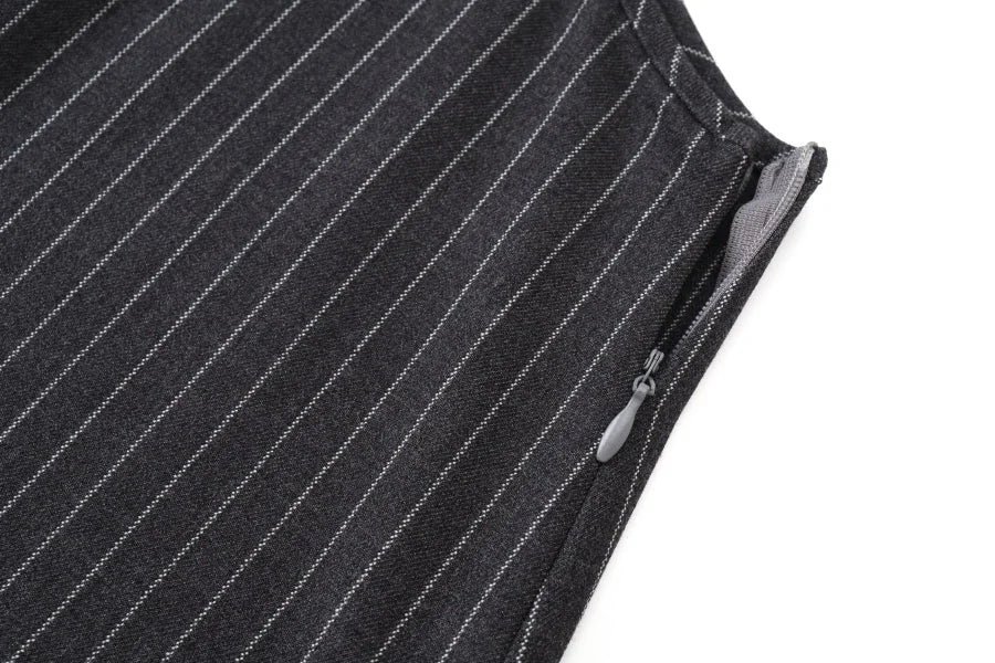 Pinstripe 4-Piece Autumn Set — Slip Dress, Knit Mockneck, Cable Knit, and Pleated Skirt